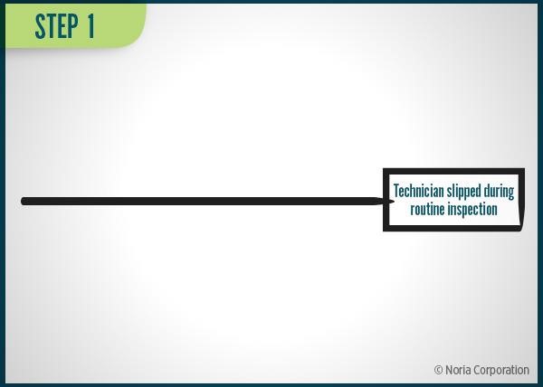 Ví dụ dưới đây của chúng tôi xác định sự cố kỹ thuật viên bảo trì bị trượt ngã và tự làm mình bị thương trong quá trình kiểm tra định kỳ.