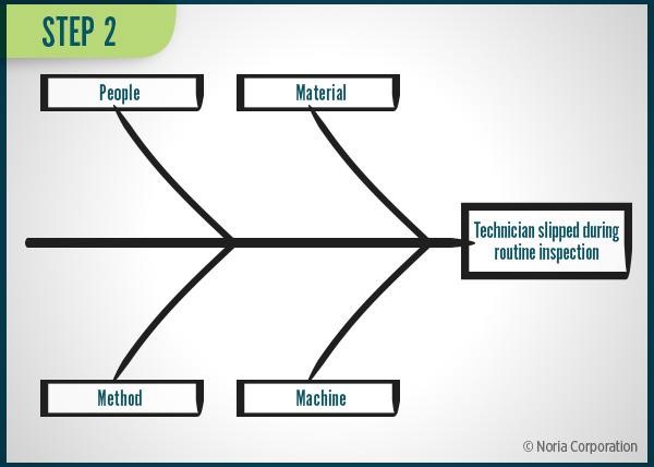 Bước hai là quyết định cách phân loại nguyên nhân của vấn đề hiện tại – những yếu tố có thể là một phần của vấn đề. Đây có thể là Thiết bị (Machine), Vật liệu (Material), Phương pháp (Method), Ngoại lực (Mother nature), Con người (Manpower), v.v. Trong môi trường sản xuất, chúng thường xoay quanh 6 Ms mà chúng ta đã thảo luận trước đó.