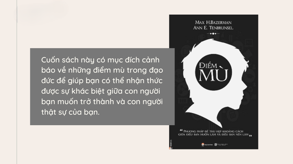 “Điểm Mù” là một cuốn sách sâu sắc và đầy tính thức tỉnh, khám phá khoảng cách giữa hành vi đạo đức mong muốn và hành vi thực tế của con người. Tác giả Bazerman đã chỉ ra rằng, ngay cả những người tốt cũng có thể đưa ra những quyết định sai lầm do những “điểm mù” trong nhận thức và môi trường xung quanh.