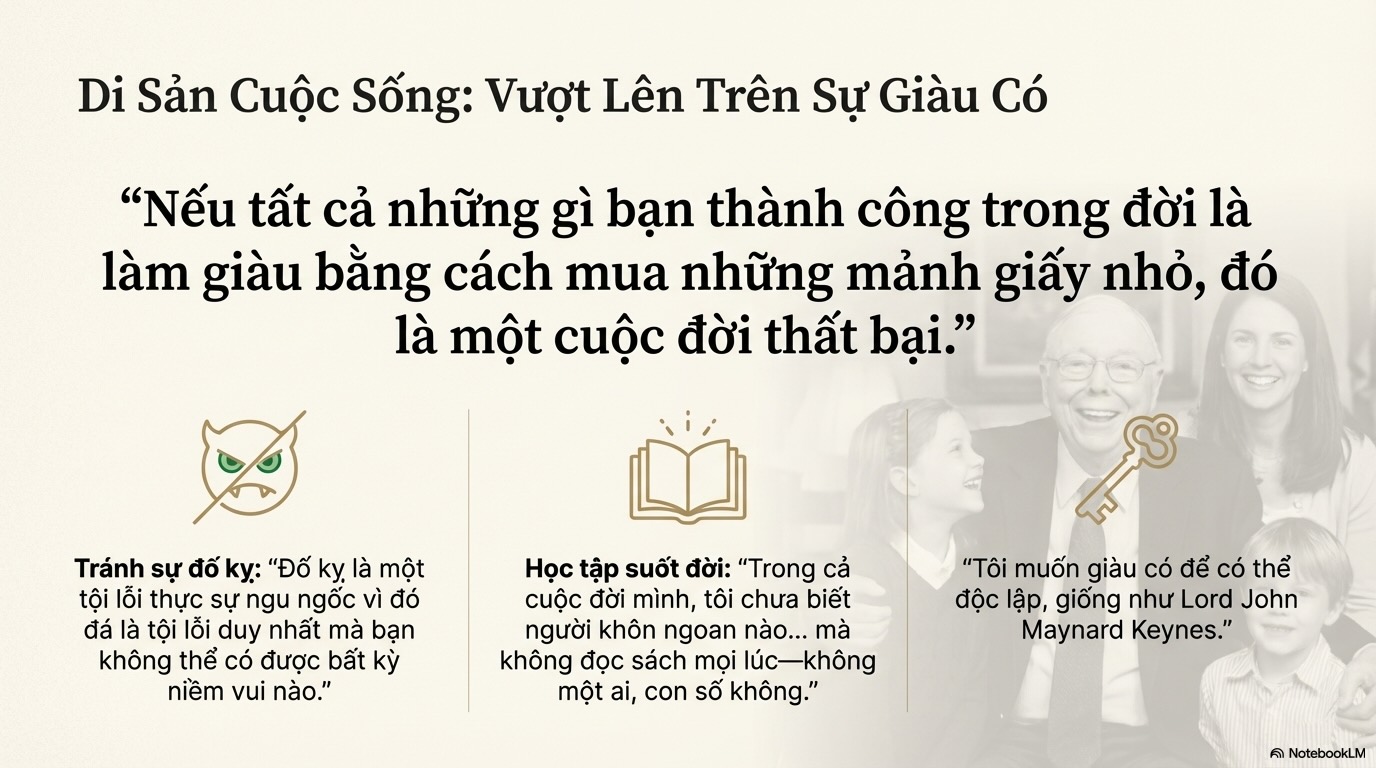 Những bài học thực tiễn này được củng cố và minh họa rõ nét qua những câu nói đắt giá của chính Munger, nơi trí tuệ của ông được cô đọng lại một cách súc tích nhất.