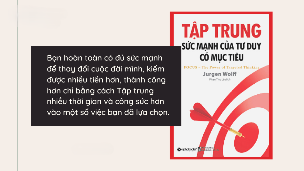 Tôi hoàn toàn khuyến nghị độc giả nên tìm đọc cuốn sách “Tập Trung – Sức Mạnh Của Tư Duy Có Mục Tiêu”. Dưới đây là 5 lý do thuyết phục tại sao bạn nên mua và đọc cuốn sách này: